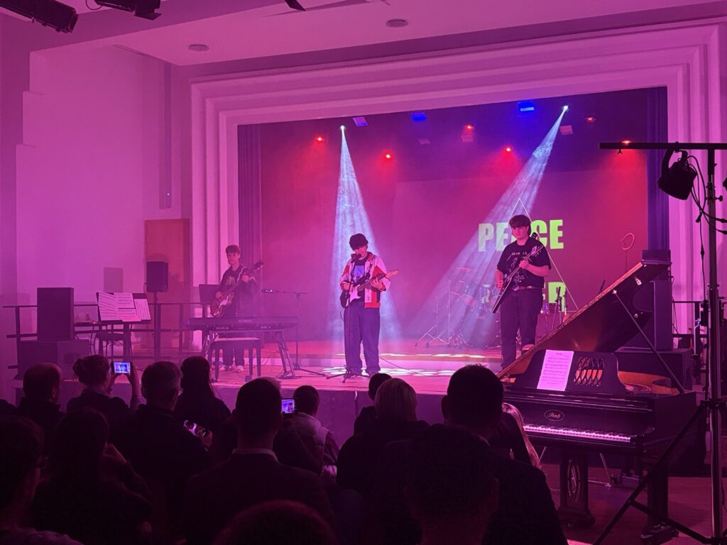 In der Aula präsentierten die jungen Künstlerinnen und Künstler ein abwechslungsreiches Bühnenprogramm. Den Auftakt machte die Schülerband „Piece on Paper“, die mit bekannten Rocksongs für eine großartige Stimmung sorgte. Es folgten zahlreiche musikalische Beiträge – von Gesang über Cello bis hin zu Gitarren- und Klavierstücken.